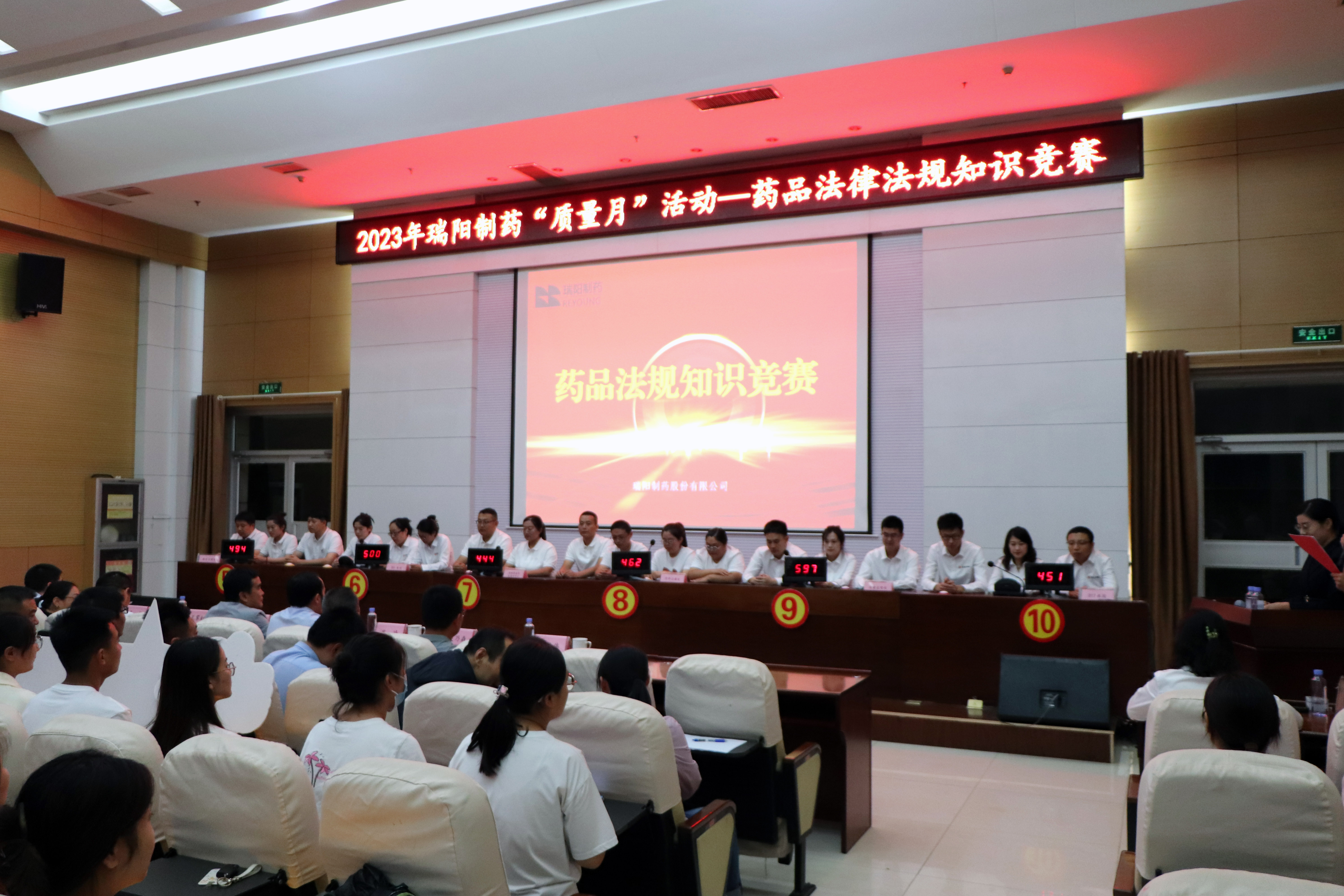 ????決賽過程中氣氛熱烈,不時掌聲雷動,參賽隊員們展示出了我們瑞陽人精益求精、追求卓越的專業素質。經過競賽決賽個人必答、小組必答、搶答和風險題四個環節的比拼,最終質量監督處代表隊獲得本次競賽一等獎,301車間代表隊、固水注冊處代表隊獲得二等獎,原料注冊處代表隊、藥物警戒部及質評中心代表隊、317車間代表隊獲得三等獎。
