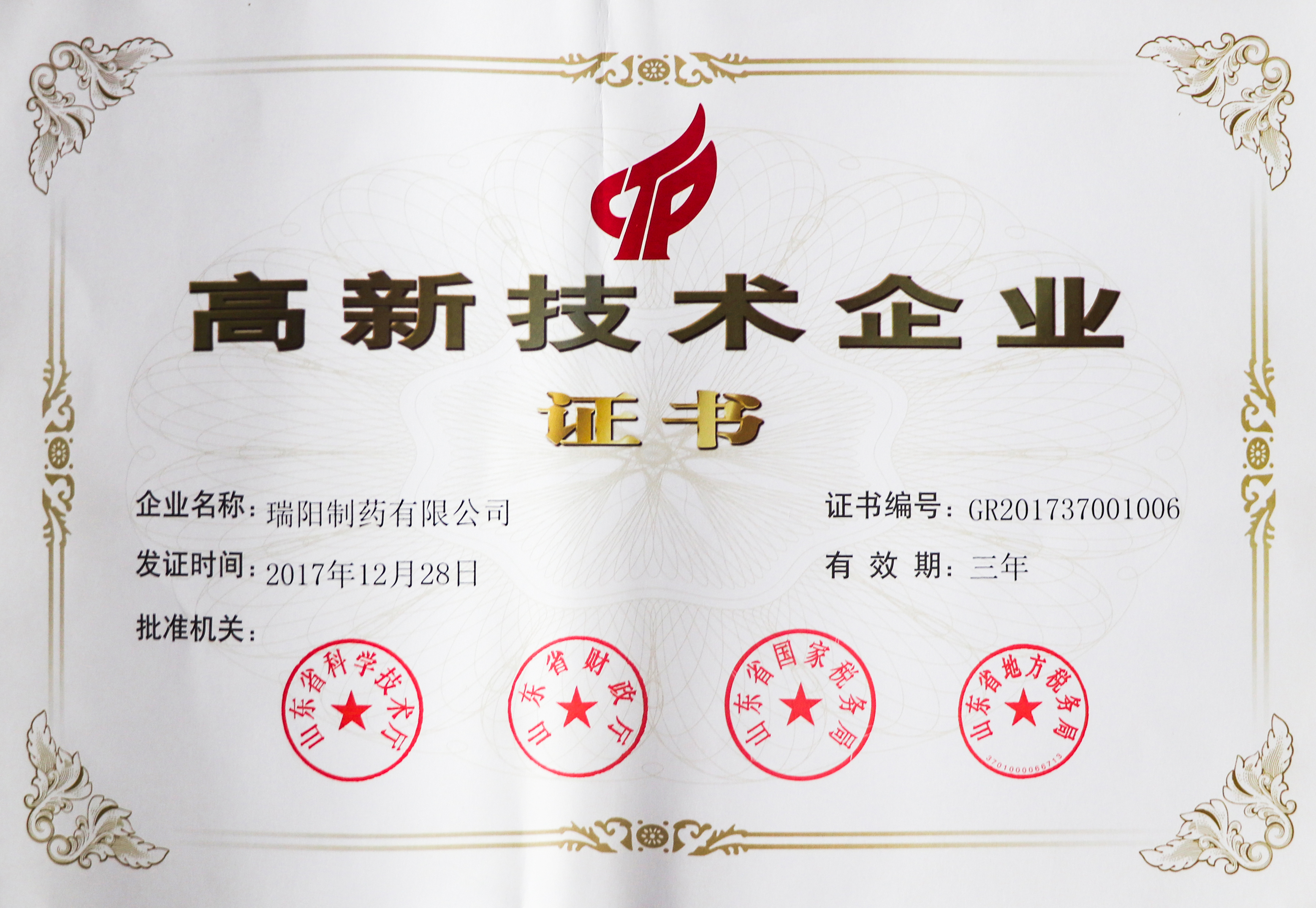 高新技術(shù)企業(yè)證書(shū)