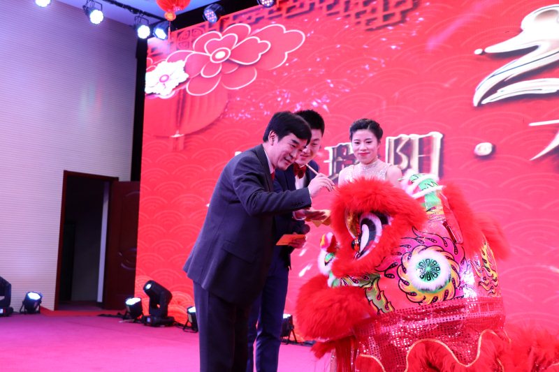 輾轉(zhuǎn)騰挪雄獅舞財(cái)運(yùn),翻飛跳躍新春送祥瑞。在苗董為雄獅點(diǎn)睛之后,一頭充滿活力的紅色雄獅在舞臺上騰挪跳躍,寓意著瑞陽一枝獨(dú)秀,配合著大屏幕不斷轉(zhuǎn)換的場景,粉針事業(yè)部張希鵬、尹玉亮為大家奉上了華麗壯觀、惟妙惟肖的演出《雄獅助興》