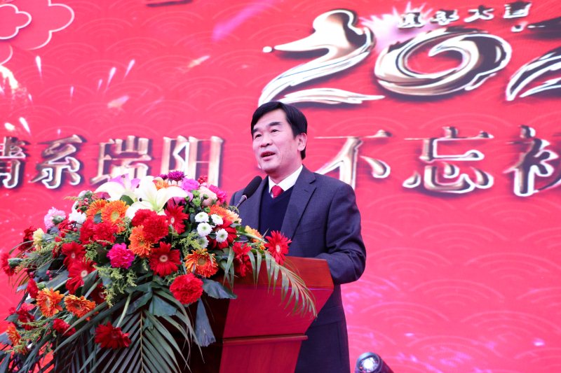 公司黨委書記、董事長、總裁苗得足先生為致晚會(huì)致開幕詞。苗董代表公司向各位來賓、各位同事表示了衷心的感謝,向一直以來愛崗敬業(yè)、勤勉工作的全體干部員工以及在背后默默支持的家屬們致以最美好的節(jié)日祝福。對2019年取得的成績進(jìn)行了簡要回顧,勉勵(lì)全體員工在新的一年里,堅(jiān)守瑞陽人的初心與夢想,攜手共進(jìn),迎難而上。