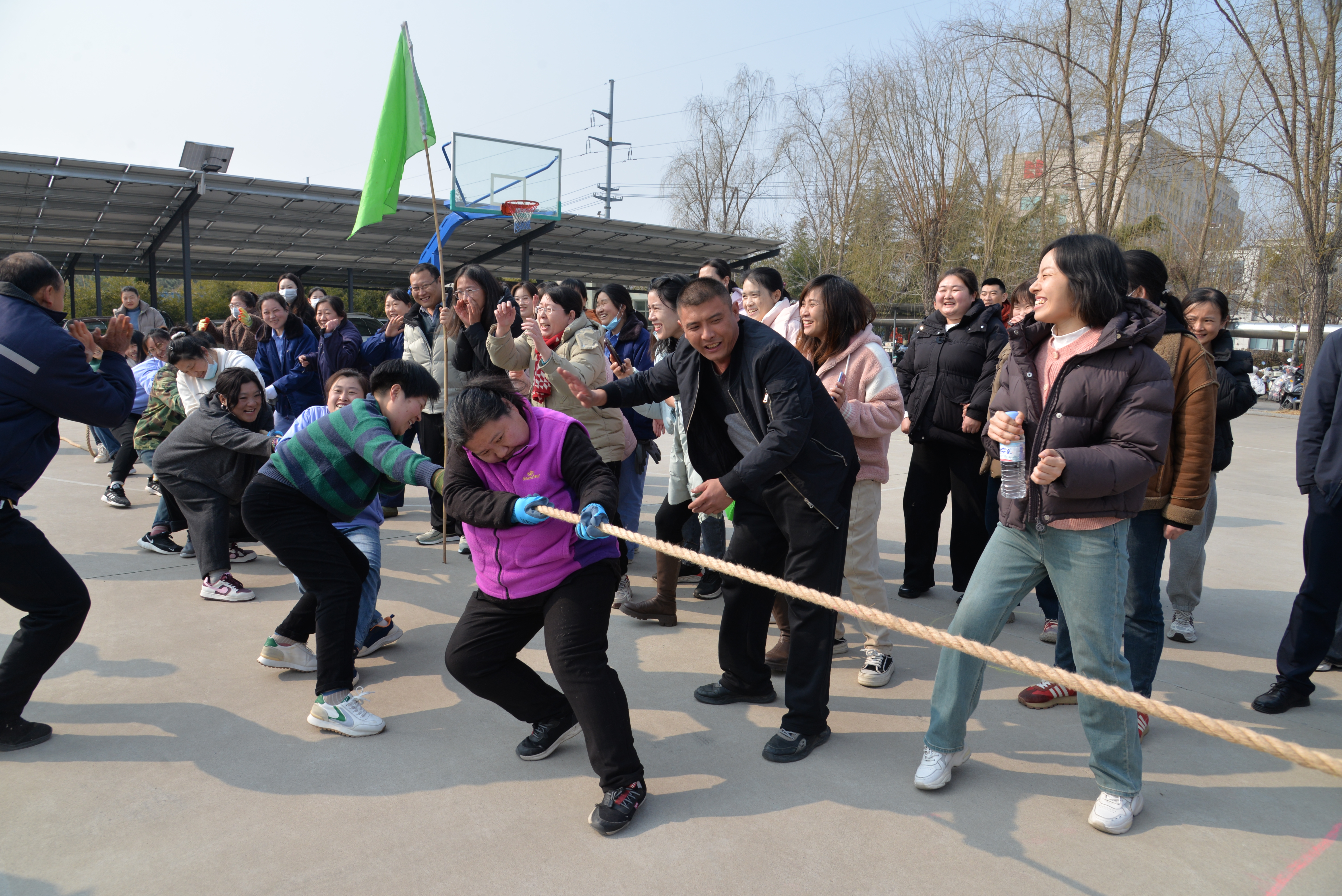 ? 隨后的拔河賽場,女職工們瞬間變身颯爽“女將”。隨著裁判哨響,粗麻繩緊繃如鋼,大家齊心協力,足蹬大地,身姿穩如磐石。啦啦隊也熱情高漲,加油吶喊聲交織回蕩。經過數輪角逐,六基層一隊斬獲拔河比賽一等獎。